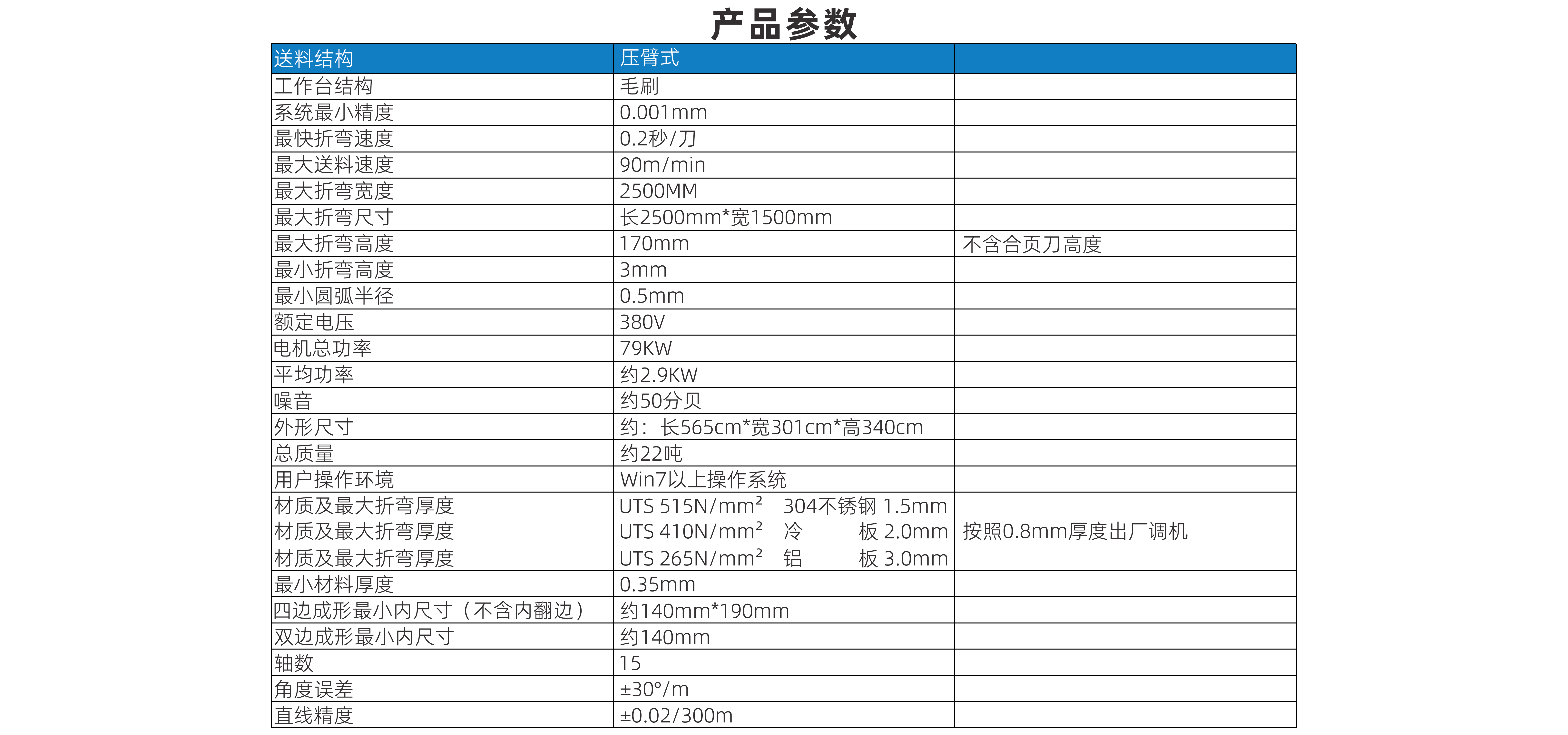 | 最大折彎高度 | 170mm | 不含合頁刀高度 |